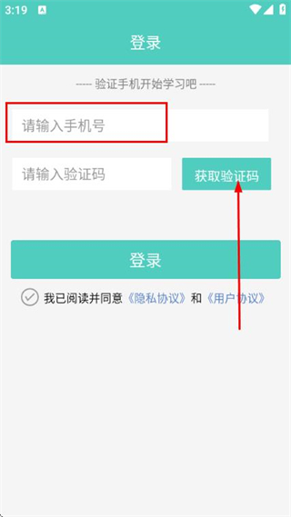 2、在手機驗證登錄頁面填寫手機號,勾選協(xié)議后,點擊獲取驗證碼。