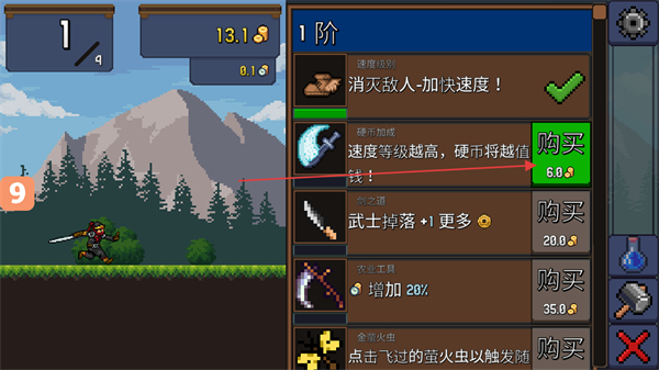 3、進(jìn)入升級(jí)界面,消耗金幣購(gòu)買速度提升等技能,強(qiáng)化角色能力。