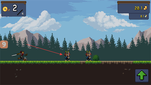 1、操控角色移動,攻擊敵方忍者,積累金幣與分?jǐn)?shù),分?jǐn)?shù)提升至19.5。