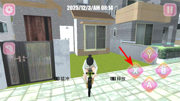 4、騎乘交通工具如自行車后,通過對應(yīng)按鍵如X觸發(fā)猛沖等功能,提升移動速度,同時可點擊按鍵釋放交通工具,切換方式適配場景需求。