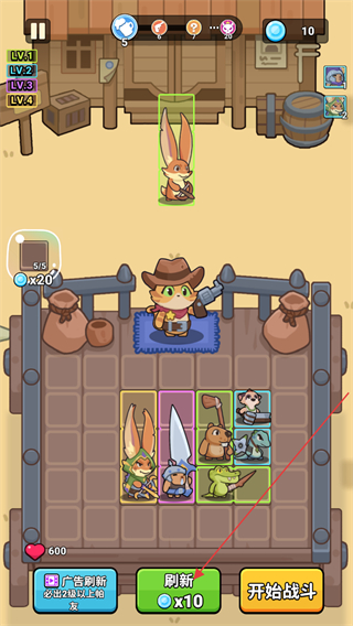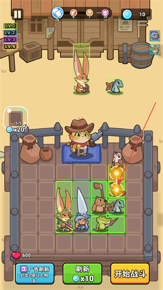 3、在關(guān)卡中,動物們會齊心協(xié)力攻擊野怪,阻止他們靠近進(jìn)攻塔車。