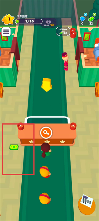 1、進(jìn)入酒店大師游戲,操控角色移動至前臺區(qū)域,招待顧客住房。