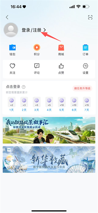 2、在個人頁面,點擊登錄/注冊選項,進入登錄方式選擇界面。