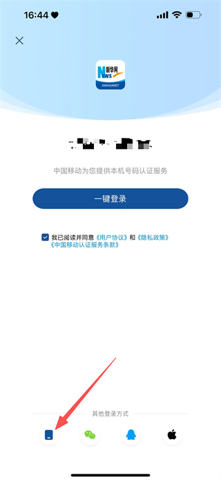 3、在登錄方式選擇頁面,點擊手機號登錄選項,進入手機號驗證頁面。