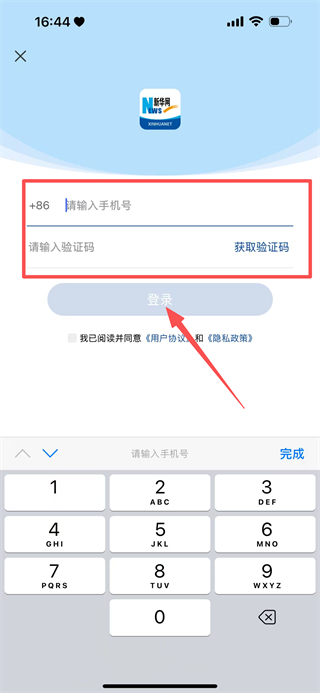 4、在登錄頁面,填寫手機號,點擊獲取驗證碼后填寫對應驗證碼,點擊登錄,完成賬號登錄。