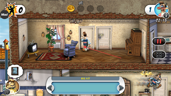 1、操控角色移動至目標房門處,避開鄰居視線,準備切換房間。