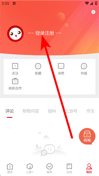 1、打開上游新聞,點擊底部的我的,進入我的頁面。