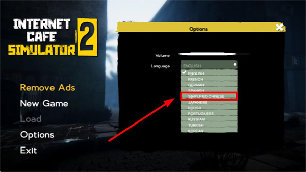 1、進(jìn)入網(wǎng)吧模擬器2主界面,找到Options選項并點擊,該選項位于界面左側(cè)列表中。