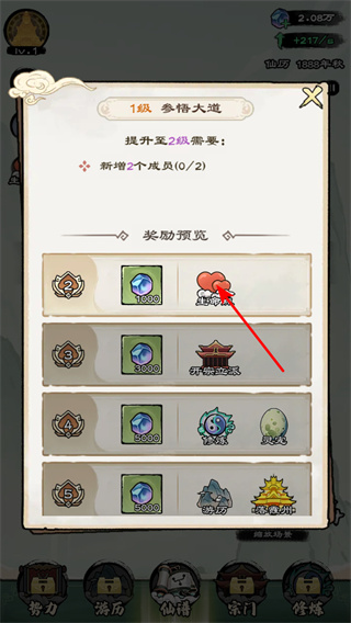 2、進入參悟大道界面后,查看升級所需條件與獎勵預覽,優(yōu)先完成對應任務解鎖獎勵,這些資源可用于角色屬性提升解鎖。