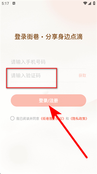 3、在輸入框中,輸入驗(yàn)證碼,勾選協(xié)議后,點(diǎn)擊登錄注冊(cè)。
