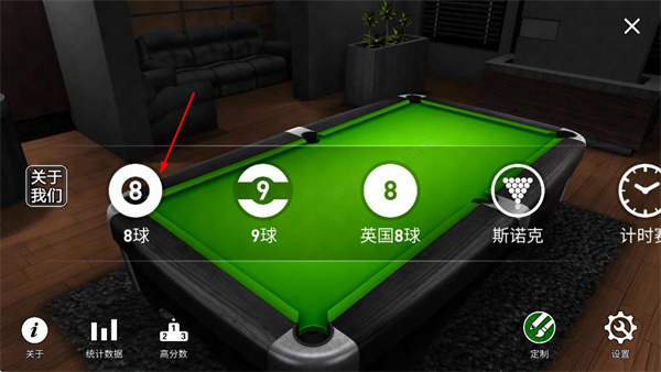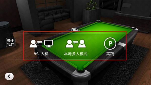 1、在軟件界面點(diǎn)擊8球選項(xiàng),進(jìn)入8球模式的玩法選擇頁(yè)面。