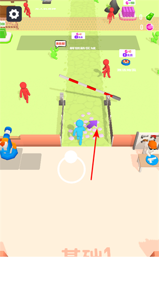 1、進(jìn)入關(guān)卡后,跟隨箭頭指引點(diǎn)擊對應(yīng)區(qū)域,引導(dǎo)藍(lán)色小人通過關(guān)卡的欄桿通道,順利讓己方單位進(jìn)入目標(biāo)區(qū)域,開啟資源收集與戰(zhàn)斗環(huán)節(jié)。