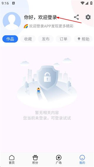 2、在個人頁面,點(diǎn)擊你好,歡迎登錄區(qū)域,進(jìn)入登錄方式選擇頁面。