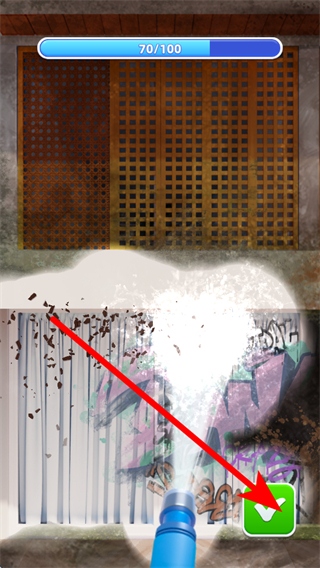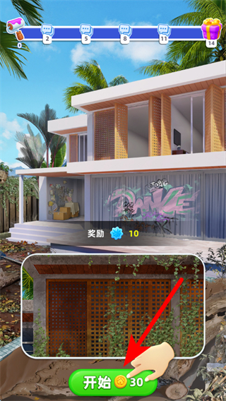 4、在裝修操作界面,完成清理如使用工具清除污漬、涂鴉等操作獲取獎勵并解鎖后續(xù)內(nèi)容。