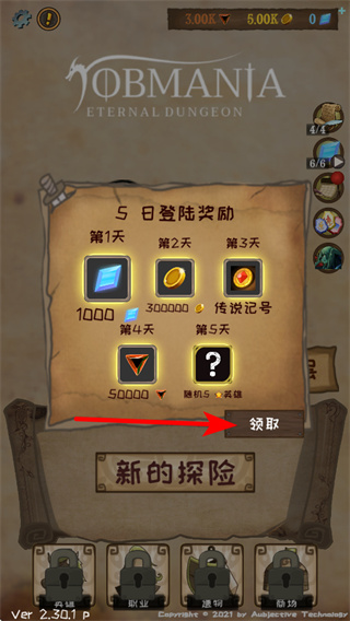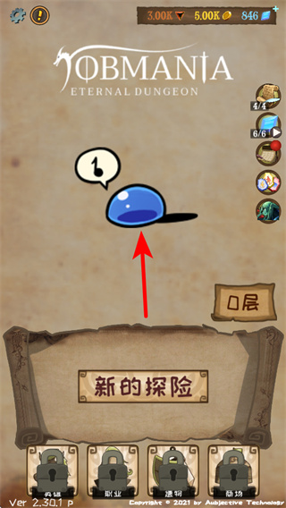 4、關(guān)注新手向?qū)У奶崾緝?nèi)容,后續(xù)可根據(jù)向?qū)е敢c(diǎn)擊新的探險(xiǎn)按鈕進(jìn)入地牢關(guān)卡,同時(shí)留意界面中的功能入口,逐步熟悉游戲的核心系統(tǒng)。