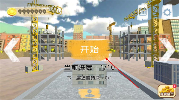1、進(jìn)入游戲主界面,點(diǎn)擊開始啟動(dòng)關(guān)卡,查看當(dāng)前建筑進(jìn)度。