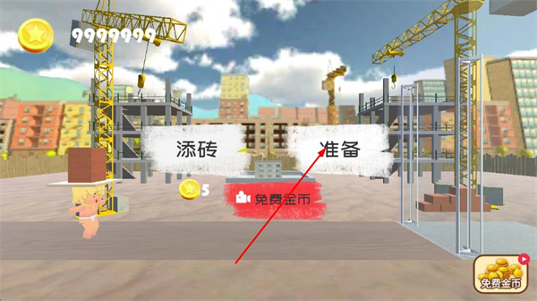 2、在工地場景中點(diǎn)擊準(zhǔn)備,操控角色搬運(yùn)磚塊,完成當(dāng)前樓層的建材補(bǔ)給。