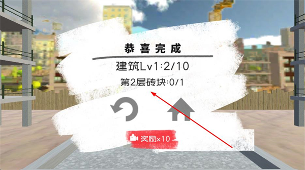 4、完成當(dāng)前樓層的磚塊需求后,解鎖建筑升級提示,點(diǎn)擊繼續(xù)推進(jìn)下一層進(jìn)度。