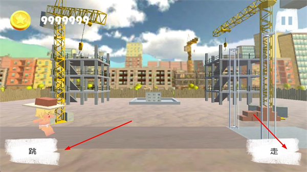 3、通過跳、走控制角色移動(dòng),往返于磚塊堆與建筑區(qū)域,完成磚塊運(yùn)輸與添磚操作。