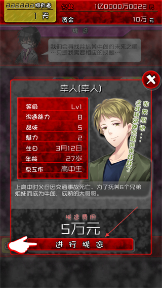 2、花費對應費用,選擇屬性適配的牛郎成員。