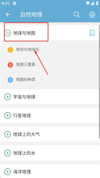 1、在高考地理通的首頁,點擊自然地理選項,進(jìn)入自然地理知識點列表頁。