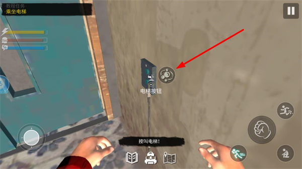 2、走到電梯旁的按鈕處,點(diǎn)擊電梯按鈕對(duì)應(yīng)的交互按鍵,觸發(fā)叫梯操作。