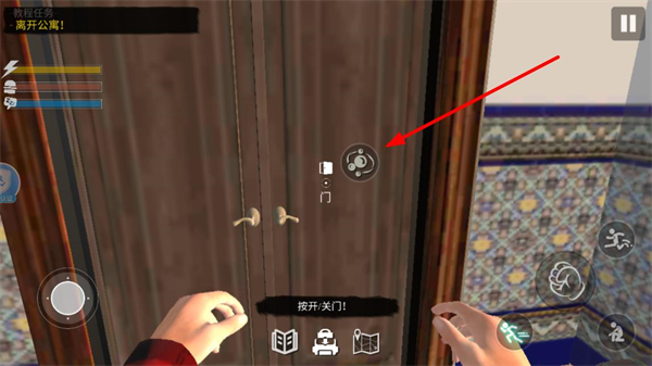 1、在公寓內(nèi)找到門的交互區(qū)域,點(diǎn)擊對(duì)應(yīng)的開(kāi)關(guān)門按鈕,開(kāi)啟公寓房門。