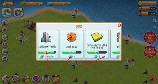3、完成對(duì)應(yīng)任務(wù)后領(lǐng)取獎(jiǎng)勵(lì),如解鎖土地拓展等資源,為城市擴(kuò)張?zhí)峁l件。