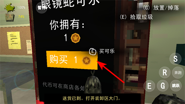 2、找到商店界面后,消耗對(duì)應(yīng)的代幣點(diǎn)擊購(gòu)買按鈕獲取物品如可樂,積累這類道具可用于場(chǎng)景互動(dòng)或任務(wù)推進(jìn),獲取方式以保障資源供給。