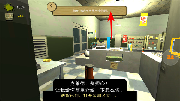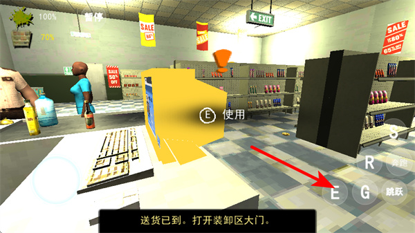 4、在商店區(qū)域,點(diǎn)擊對(duì)應(yīng)按鍵如E使用功能設(shè)備,完成任務(wù)相關(guān)的操作如處理貨物,同時(shí)持續(xù)關(guān)注界面的任務(wù)進(jìn)度提示,逐步推進(jìn)流程。