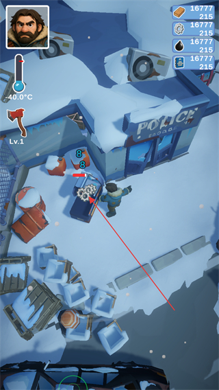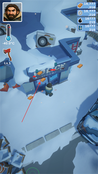 1、這是雪地生存類游戲場景,當(dāng)前環(huán)境溫度為-40.0℃,先拾取畫面中的Lv.1斧頭道具,它可用于后續(xù)采集資源,同時需注意低溫環(huán)境需盡快籌備保暖相關(guān)物資。