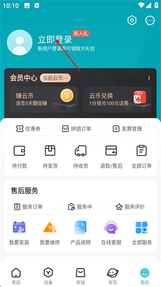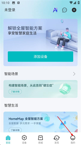 1、在云米首頁(yè),點(diǎn)擊底部的我的選項(xiàng),進(jìn)入個(gè)人中心頁(yè)面。