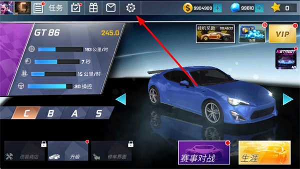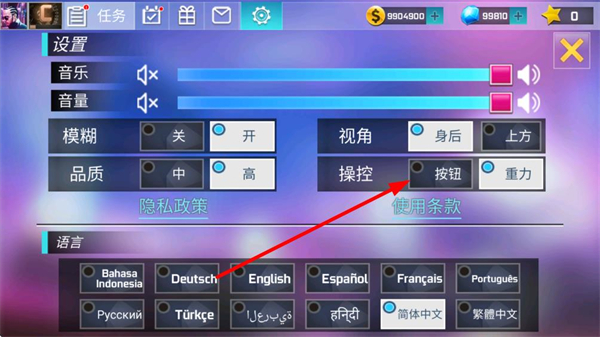 2、將默認(rèn)的重力模式切換為按鈕模式,完成后關(guān)閉設(shè)置界面,此時(shí)車輛操控方式已改為按鈕控制。