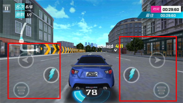 4、進(jìn)入比賽后,界面兩側(cè)會(huì)出現(xiàn)按鈕,左側(cè)箭頭按鈕可控制車輛向左轉(zhuǎn)向,右側(cè)箭頭按鈕控制車輛向右轉(zhuǎn)向。