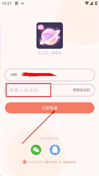 3、在驗證碼輸入框中填寫收到的驗證碼,點擊立即登錄完成賬號的登錄操作。