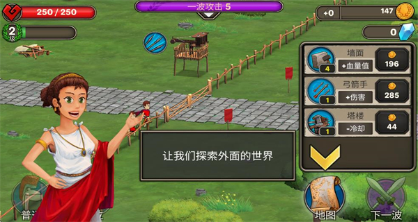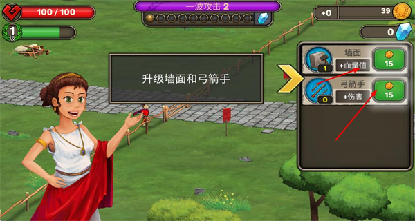 3、利用獲取的金幣,升級墻面與弓箭手,增強(qiáng)防御能力,應(yīng)對更強(qiáng)波次。