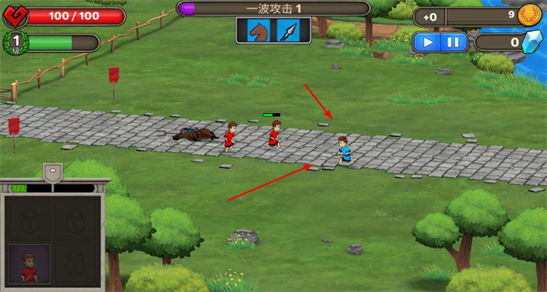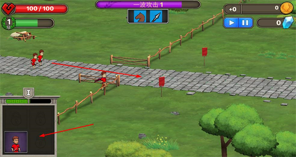 1、進(jìn)入關(guān)卡后,點(diǎn)擊選擇士兵單位并布置到路徑旁,這是抵御敵人進(jìn)攻的基礎(chǔ)操作,開啟防御進(jìn)程。