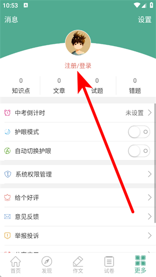 1、打開中考語文通,點(diǎn)擊底部更多,進(jìn)入功能頁面。