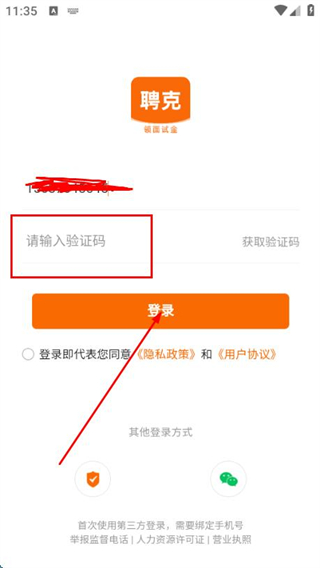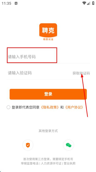 2、在登錄頁面填寫手機號,勾選協(xié)議后,點擊獲取驗證碼。