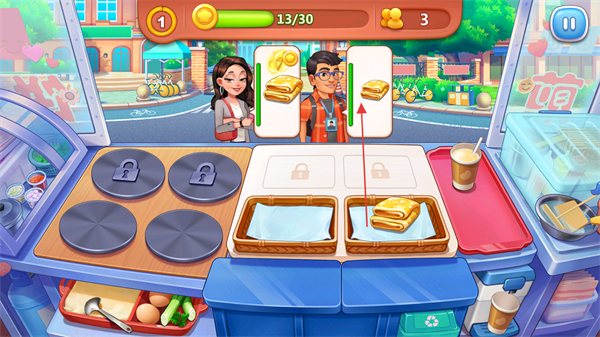 3、繼續(xù)制作食物并交付給顧客,提升進(jìn)度條數(shù)值。