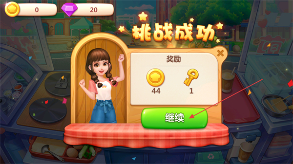 4、挑戰(zhàn)成功后獲得獎(jiǎng)勵(lì),點(diǎn)擊繼續(xù)進(jìn)入下一關(guān)。