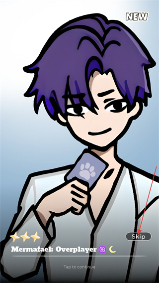 2、祈愿后出現(xiàn)Mermafael:Overplayer卡牌的展示界面,可點擊Skip跳過該展示,或點擊界面繼續(xù),完成后進入下一流程。