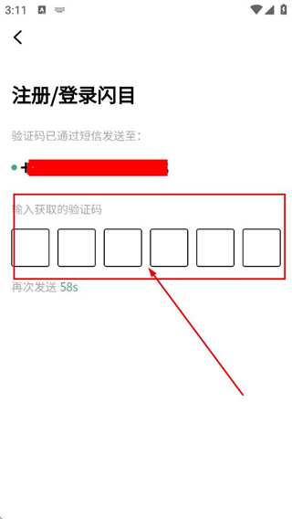 4、在注冊(cè)/登錄閃目頁面,填寫收到的輸入獲取的驗(yàn)證碼,完成賬號(hào)的注冊(cè)與登錄。
