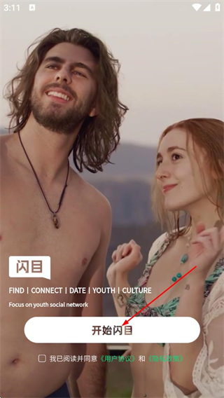2、在閃目歡迎頁面,勾選我已閱讀并同意,點(diǎn)擊開始閃目,進(jìn)入登錄/注冊(cè)頁面。