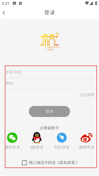 3、在登錄頁面,輸入信息,勾選協(xié)議后完成登錄操作。