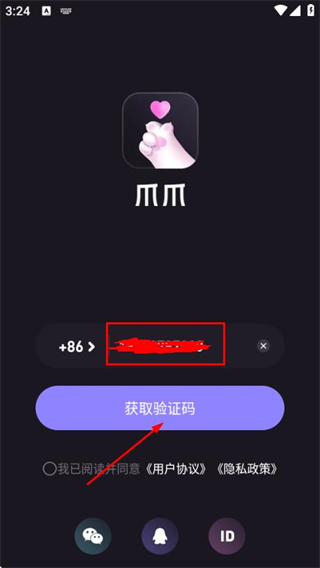1、在使用協(xié)議隱私政策彈窗中點(diǎn)擊同意按鈕,進(jìn)入注冊頁面。
