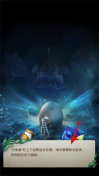 2、劇情階段會出現(xiàn)任務(wù)提示如海靈需要聯(lián)合起來,跟隨提示了解關(guān)卡背景,明確后續(xù)消除操作的目標如保護遠古巨蛋。