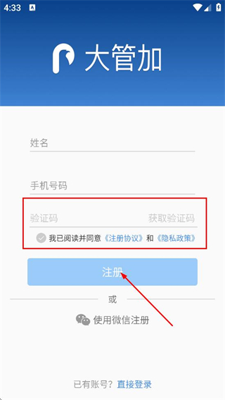 4、繼續(xù)在注冊頁面,填寫驗證碼后,點(diǎn)擊注冊,完成賬號注冊。
