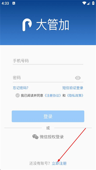 2、在登錄頁面,點(diǎn)擊底部的立即注冊選項,進(jìn)入注冊頁面。