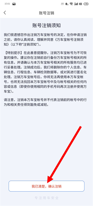5、在賬號注銷須知頁面,點擊我已清楚,確認(rèn)注銷,完成注銷。